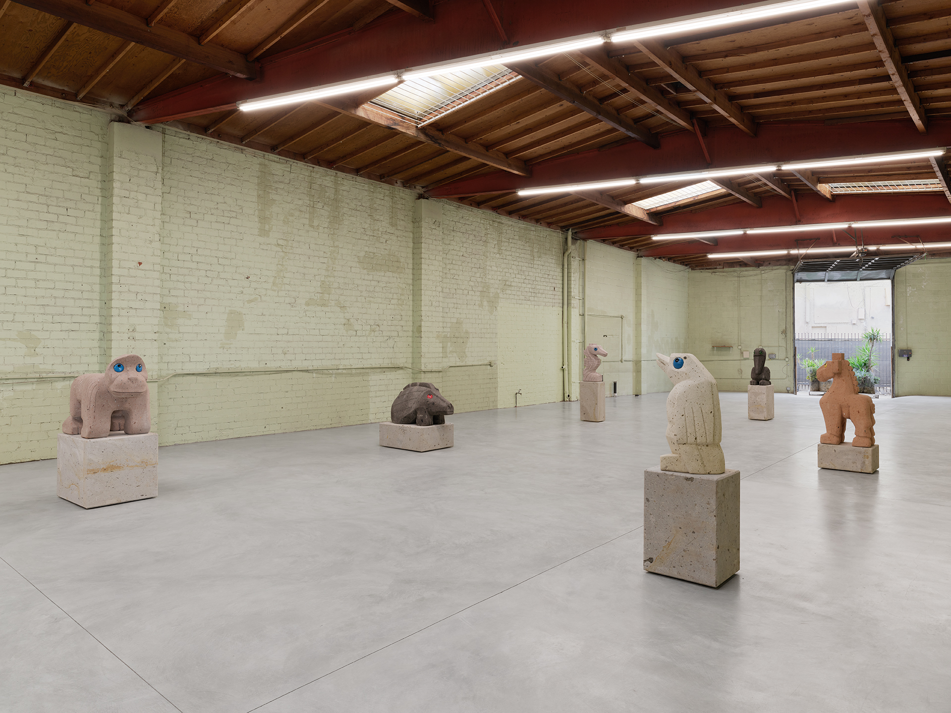 Bear, 2020, Cantera Pinion Stone, Ceramic Eyes, 80 x 65 x 56 cm (31,5 x 25,59 x 22,05 in) Sculpture, 30,5 x 63,5 x63,5 cm (12 x 25 x 25 in) Pedestal